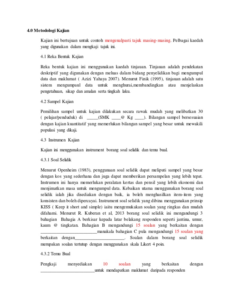 Perincian soal selidik adalah seperti di lampiran. Methodologi kajian metodologi kajian pemerhatian soal selidik sesi temu bual rujukan 6. Instrumen kajian digunakan sebagai asas bagi.